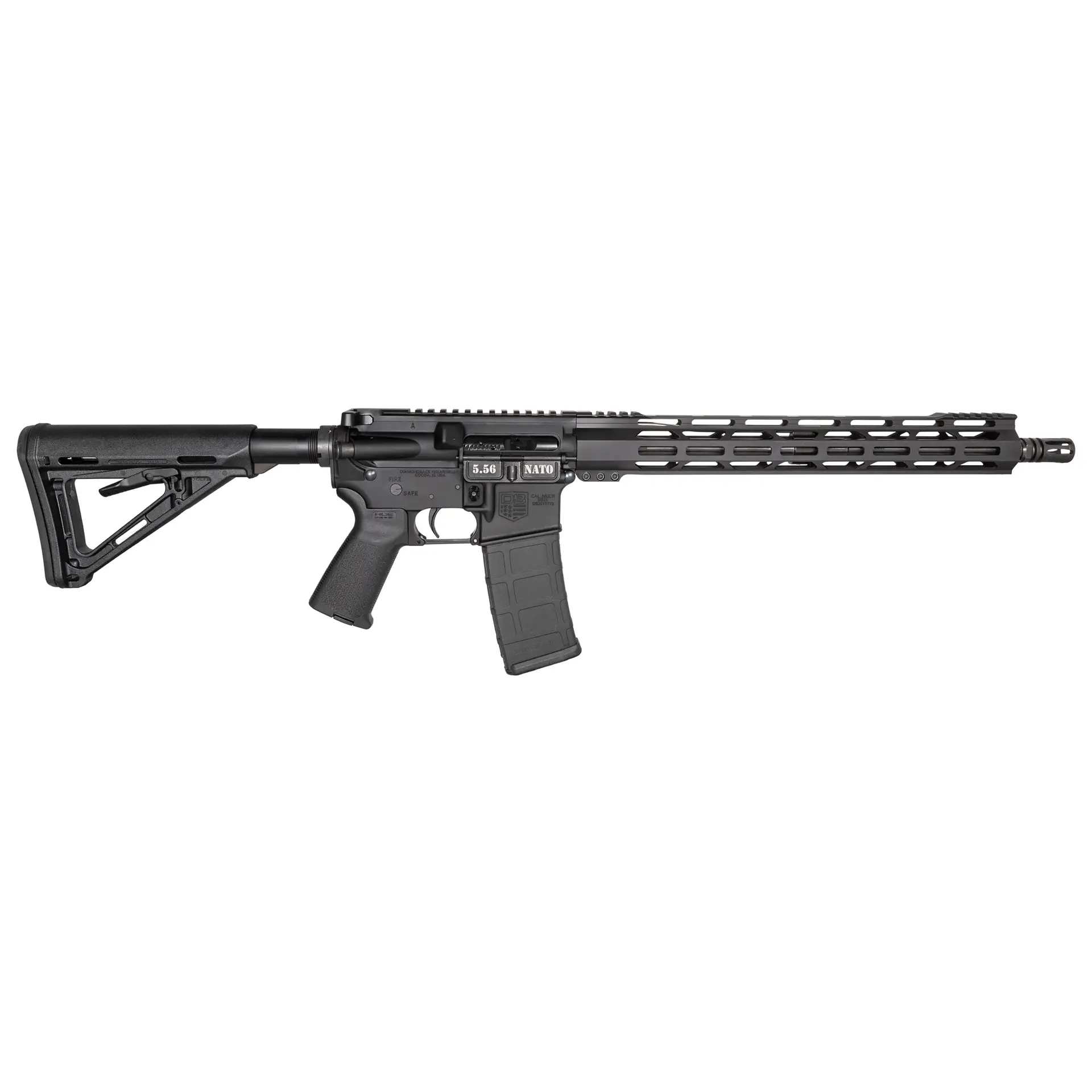 The DB15 is built on 7075-T6 aluminum receivers finished with a hard-coat anodized surface for durability and corrosion resistance. It includes a 15″ free-float M-LOK handguard for accessory mounting flexibility, and Magpul MOE furniture (stock, grip) for modern ergonomics and handling. The standard muzzle device is an A2 flash hider, threaded for 1/2-28.