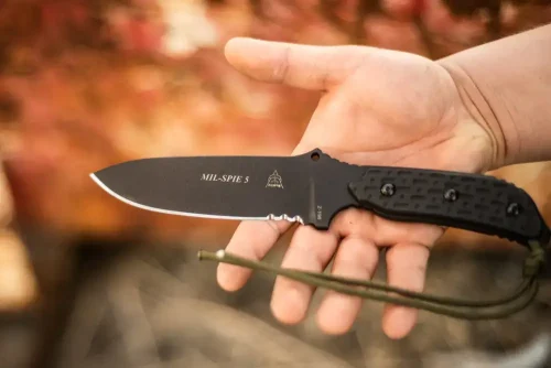 TOPS Knives is often approached by individual OPERATORS who advise us of their ideas and the criteria that need to be met for their Unit or Team. This challenge was to develop a small and a large field knife with a fairly narrow carrying profile. It had to be strong and lightweight. With this criteria in mind, we created and named the Mil-SPIE Knives. Two sizes were developed: Mil-SPIE-3 and Mil-SPIE-5.